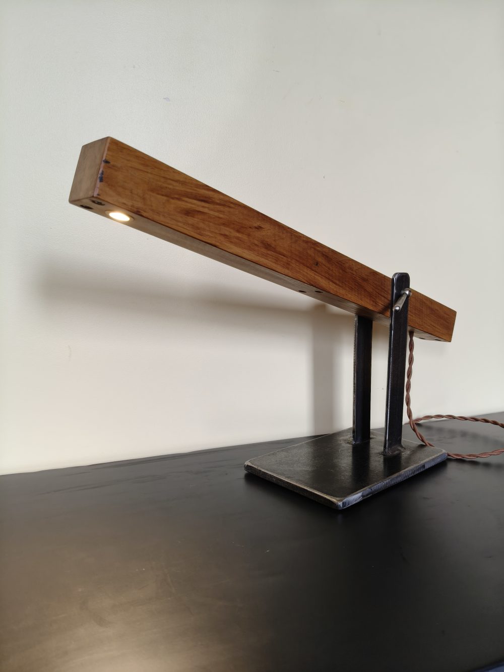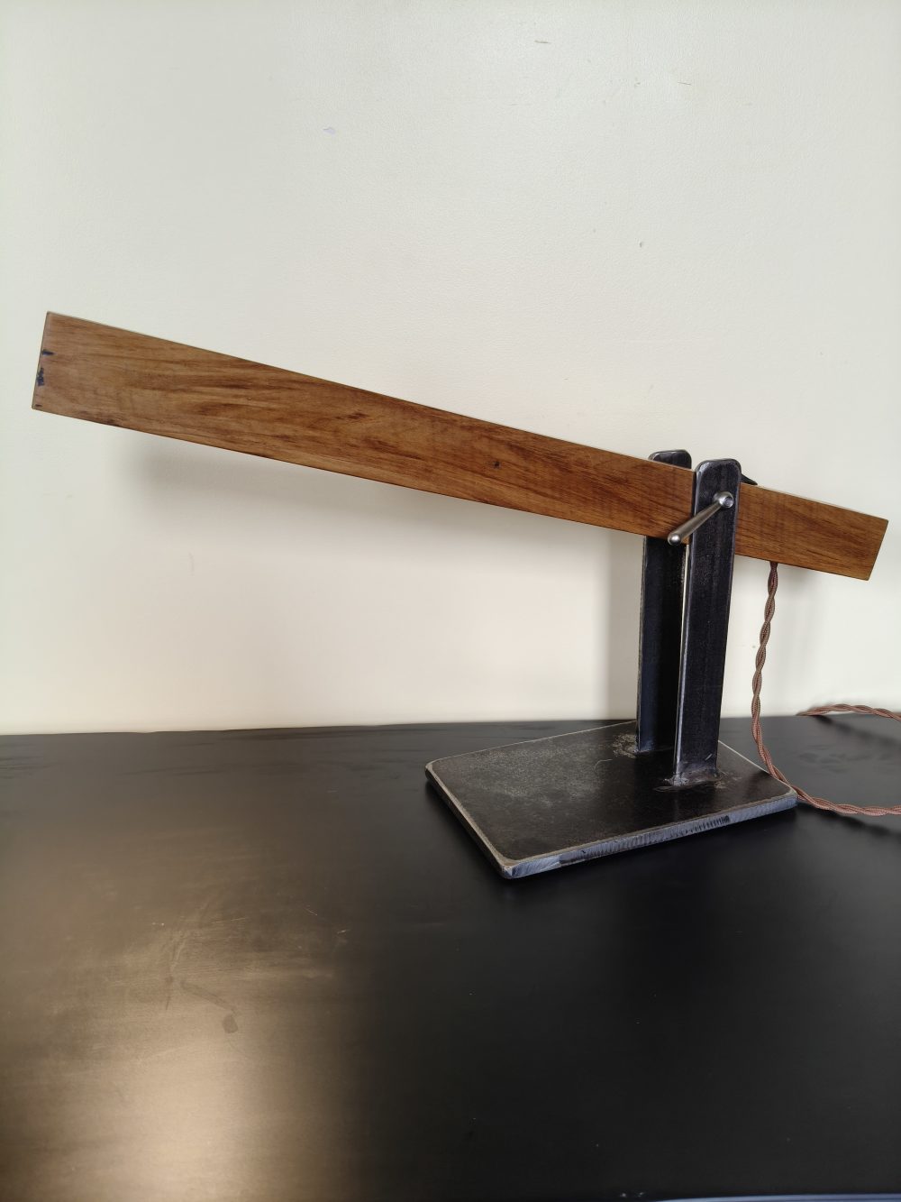 The desk lamp is one of JK Bespoke’s original pieces and was designed with a mid century theme in mind This Desk lamp is crafted in recycled Rimu an iconic native New Zealand timber valued for its beauty and versatility. The mid century theme is continued with the addition of a toggle type on/off switch and the use of a true fabric covered braided cord. The completed light has been finished with JK Bespoke’s in house made “Manuka Hive Bees Wax which imparts a soft glow and soft feel to timber.