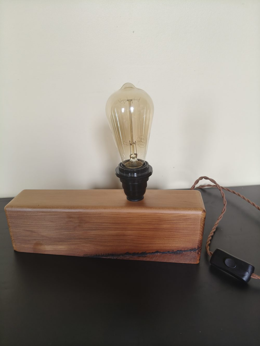 Created from a slightly tapered piece of native recycled Matai featuring an interesting filled in flaw low on the base and radiused edges that soften the look the light is fitted with a black Edison screw bulb holder, a braided cloth cord and an in line on/off switch. This is a simple elegant light for any room.